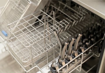 - ミーレのジェットウォッシャーは、[洗浄・すすぎ・消毒・乾燥]までを自動的に行い、手洗いでは難しい器具の細部までくまなく洗浄し滅菌する高熱水洗浄消毒器です。感染の原因となる血液や唾液などのたんぱく質の汚れを落とすだけでなく、93度の熱水ですすぎを行うため、高レベルな熱湯消毒が可能です。