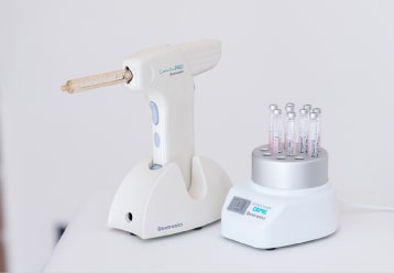 - 歯科麻酔薬を専用保温器で体温に近い温度(36度)に温めることによって、刺激や痛みを抑えることができます。