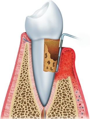 日本で一般的に普及しているレーザーとは異なり、特殊な波長によるレーザー光なので、歯肉や骨細胞へのダメージが少なく、ほぼ歯周病菌のみを殺菌できます。